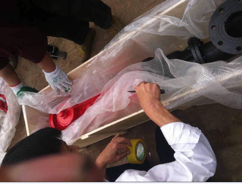 出口泰國的一批消火栓生產(chǎn)包裝完畢
