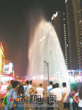 原來,遼寧路人防工程施工時(shí),不慎弄“傷”了此處開挖路面下供水管道上的消防栓,引起爆管。隨后,洛陽北控水務(wù)集團(tuán)維修人員立刻趕到現(xiàn)場維修。20時(shí)47分許,“噴泉”消失
