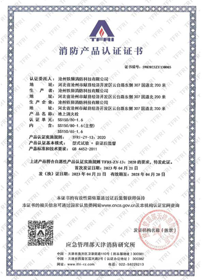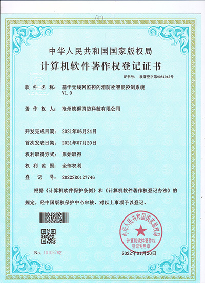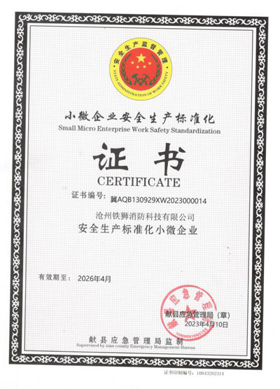資質(zhì)榮譽(yù)-滄州鐵獅消防科技有限公司